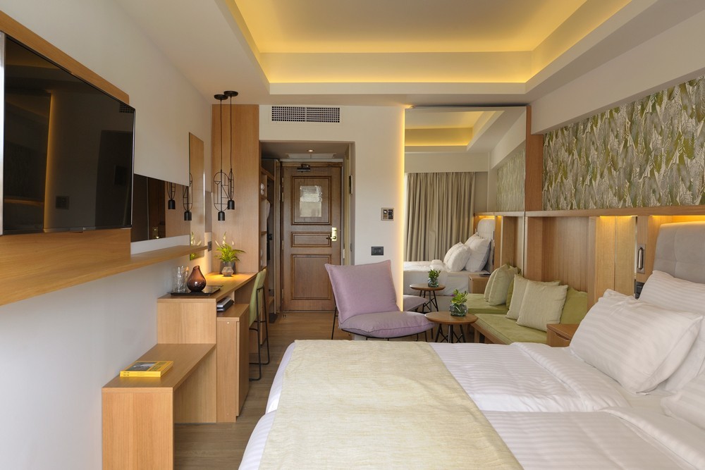 ( 18 кв. м.):балкон, спальня с двуспальной или двумя отдельными кроватями, ванная комната с ванной. Расположены в главном здании на верхних этажах. Вид на горы или на море.