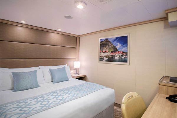 В каюте без окна площадью 15 кв.м с удобством смогут расположиться до четырех человек. Каюта оборудована двуспальной кроватью (трансформируется в две односпальные), телевизором, телефоном, сейфом, минибаром, душем, туалетом, феном и гардеробом.