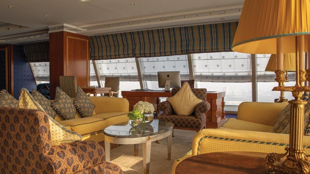 (670 кв. м): двухуровневый номер. На первом уровне: 3 гостиные зоны, обеденная зона (стол на 8 персон), игровая зона для детей и развлекательные возможности для подростков, кухня, бар, спальня с двумя отдельными кроватями, ванная комната с джакузи. На втором уровне: 2 спальни (каждая с кроватью king-size), гардеробная, 2 ванные комнаты с джакузи.