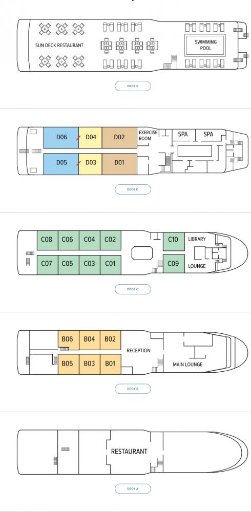 Описание Кают на лайнере The Oberoi Philae План палуб лайнера The Oberoi Philae Круизы на лайнере The Oberoi Philae